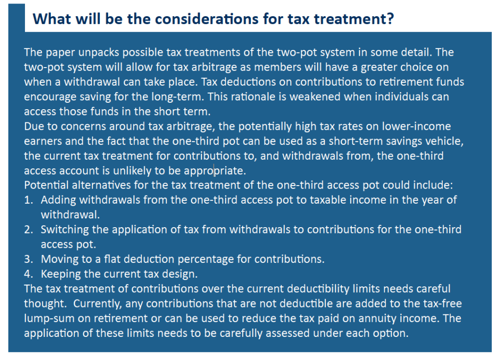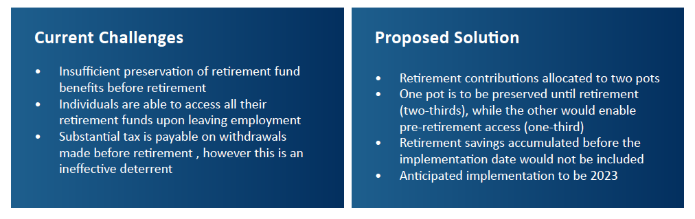 To allow for a simpler and more harmonized retirement fund system going forward, it is proposed that retirement annuity funds be included in the two-pot system.
